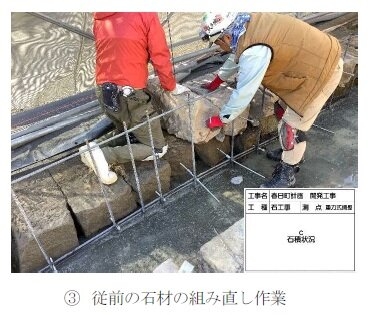 ③ 従前の石材を再度組み直すことで、新たな重力式石積擁壁として完全復元。
