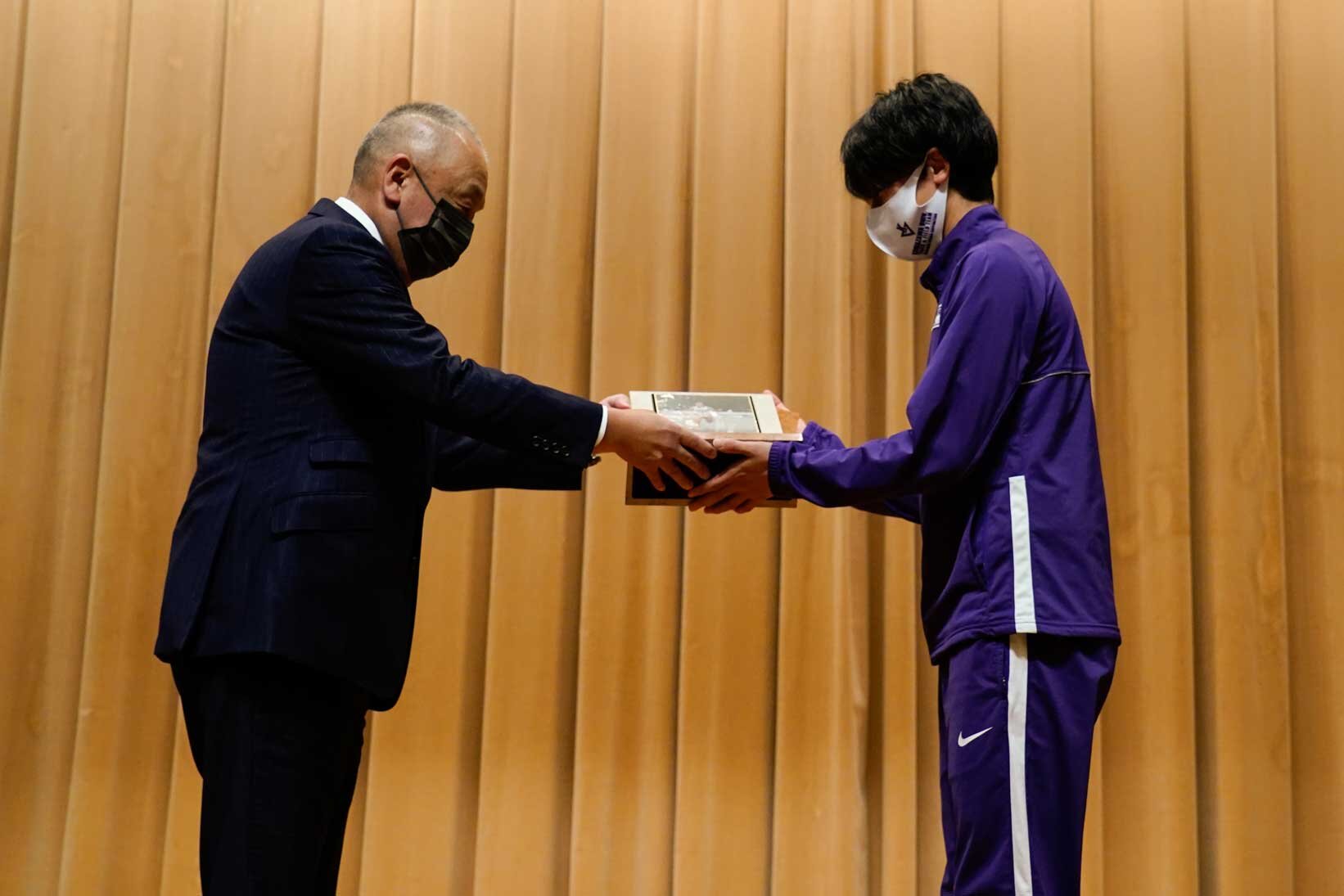 全ての大学に日本一を目指すチャンスがある「全日本大学駅伝」であることを、長谷工が学生たちに差し入れた出場校名入りの駅伝応援ボトルで表現