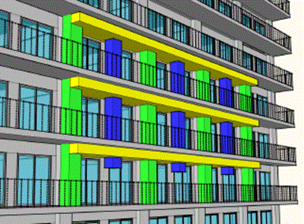 開放廊下およびバルコニーに面する柱の外側方向に鉄筋コンクリートを増打ちし、柱の厚みを増すことで地震発生時の柱の変形性能を向上させる耐震補強工法です。東京建築検査機構の評定を取得しました(第TBTC評定14001-1号)
