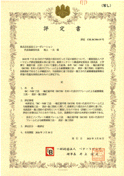 ◆「後施工部分スリットによる柱の耐震補強工法」(有効期間:2021年2月)(更新手続中)