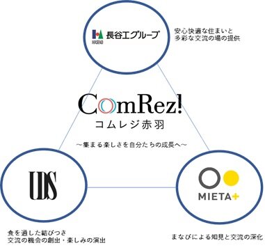 運営については、まちづくりにつながる施設の企画、設計、運営を手がけるUDS株式会社(本社:東京都渋谷区、社長:黒田 哲二)による、食堂運営やさまざまなイベント運営を通じたコミュニティ形成促進策に加え、"まなび"を通して人の成長機会を創出してきた株式会社ミエタ(本社:東京都千代田区、社長:村松 知明)による、居住者の興味・関心にそったカリキュラムを自宅にいながら楽しんで学ぶ「GAKU家」の提供、これらを統括して運営する分譲マンション管理で36万戸の実績を持つ長谷工コミュニティの3社が行っていく予定です。