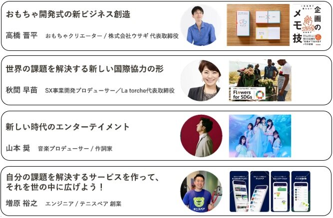 テクノロジーマーケティング・SDGsといった日常業務では触れる機会の少ない社会課題から、身近なものや日常生活を一歩掘り下げたテーマまで幅広い題材を取り上げ、また気軽に参加できるサロンのようなスタイルから課題解決の企画立案に挑戦できるゼミのようなスタイルまで、それぞれが自身の興味・関心や生活に合わせやすい幅広いカリキュラム・スタイルを準備しています。