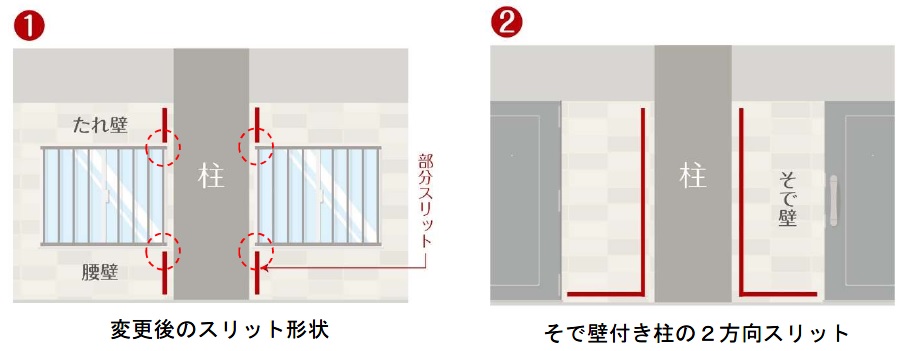 ①腰壁・たれ壁付き柱のスリット形状の変更