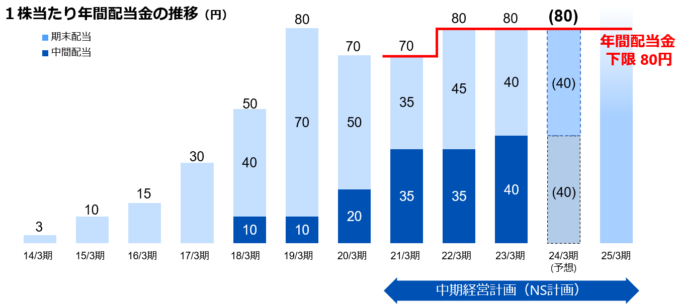 | 2025年3月期 | - | 40.00 | - | 45.00 | 85.00 | 23,583 | 67.4 | 4.4 |