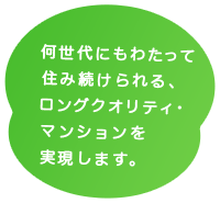 そして、「長期優良住宅」関連のさまざまな技術や、オリジナルの先導提案技術などを取り入れて、私たちが目指している理念を反映したマンションが長谷工の「ロングクオリティ・マンション」です。