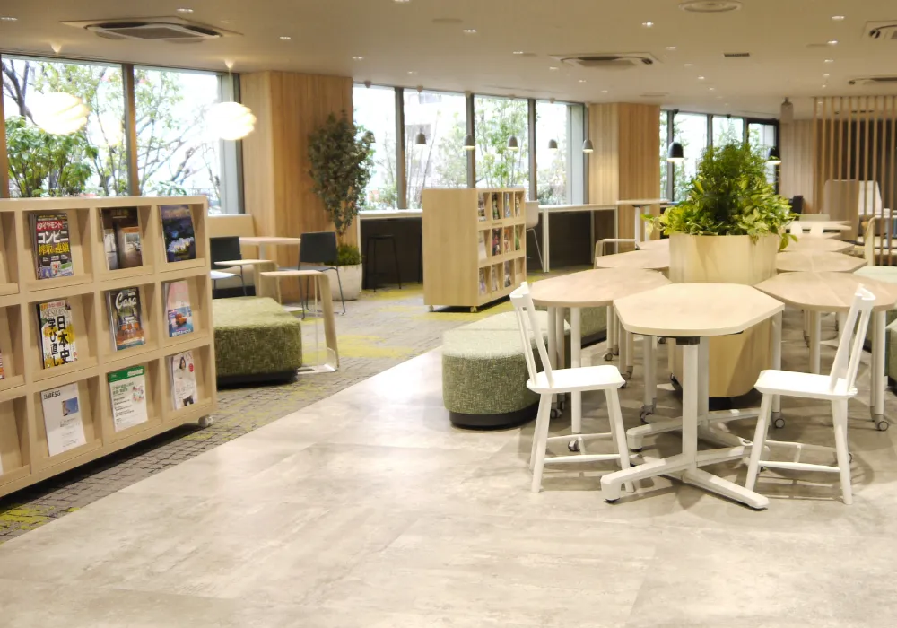 新たな発想や閃きを創出できる空間、他部署との交流ができる空間、ちょっと一息つける空間として、「MOStPlace」を本社に併設しています。“生産性向上”“コミュニケーションの活性化”をコンセプトとし、昼食時や、アフター5のイベントにもフレキシブルに対応できる多目的スペースです。