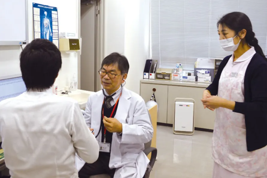 体の具合が悪くなったら、社内の診療所で診察・薬の処方を受けられます。毎日の一般診療のほか、定期検診・インフルエンザの予防接種等、社員の健康づくりをバックアップしています。
