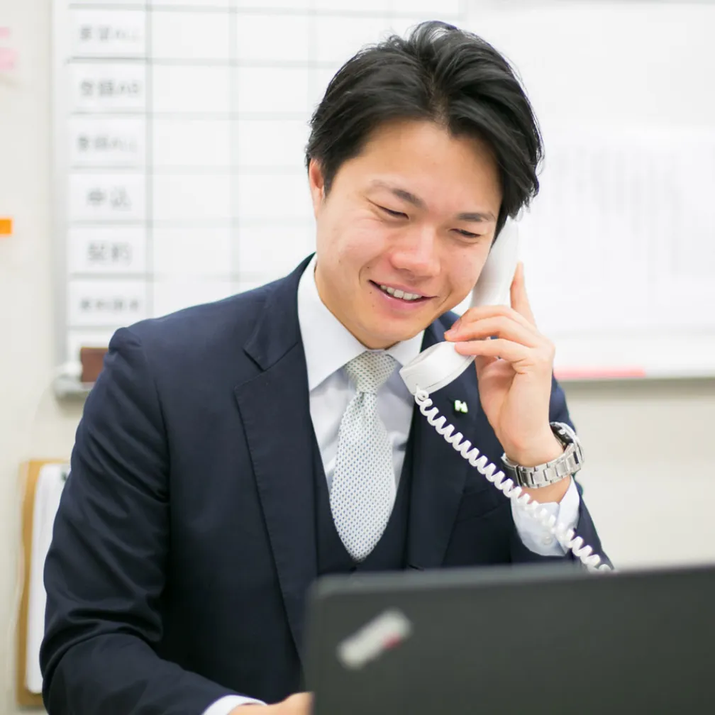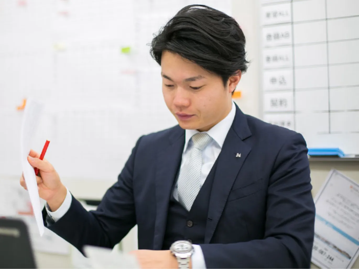 新築マンション販売のプロジェクトリーダーを務めています。仕事内容はモデルルームにご来場されるお客さまのご案内の他に、デベロッパーへの販売戦略・商品企画の提案や、より多くの方にモデルルームへお越しいただくため、広告代理店とともにチラシ・ホームページなどの作成も行っています。リーダーに就任してからは、担当プロジェクトの完売に向けて、多くの関係者と共に力を合わせて働いていけるところにやりがいを感じています。