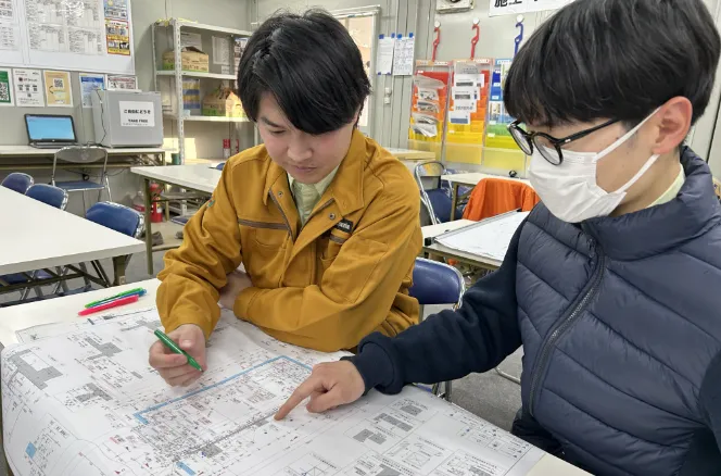 現場では細かな配置調整や納まりの検討を行い、提案に対して法令や機能面から判断・対応します。施工中の学びを設計に生かし、竣工まで一体となって建物を完成させます。