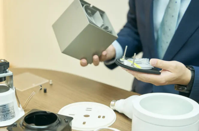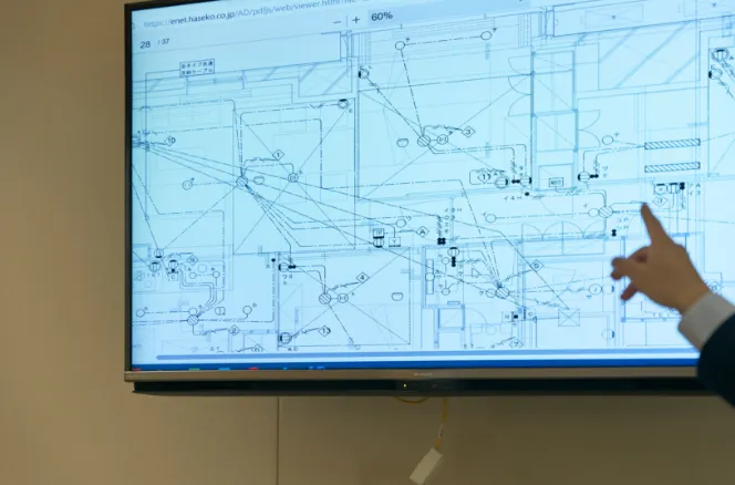 照明器具や電気設備の選定に向けてメーカーと打ち合わせを行い、デザインやコスト、省エネ性能などを考慮しながら建物に最適な機器を選定していきます。