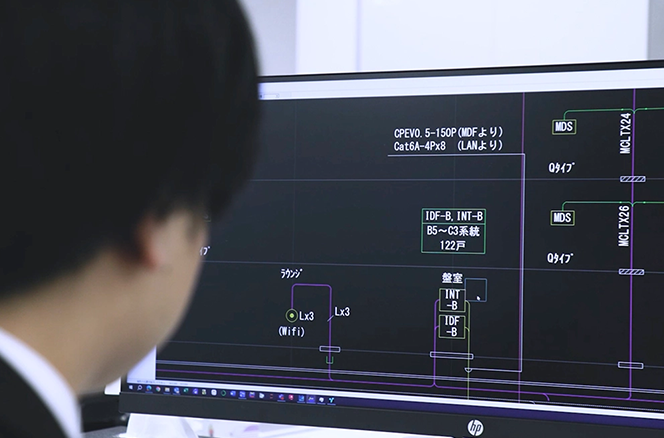 コンセントや照明の配置、電力供給経路などを計画し、建物用途に応じた電気設計を行います。他部門と調整しながら、使いやすく効率的な配線を目指します。