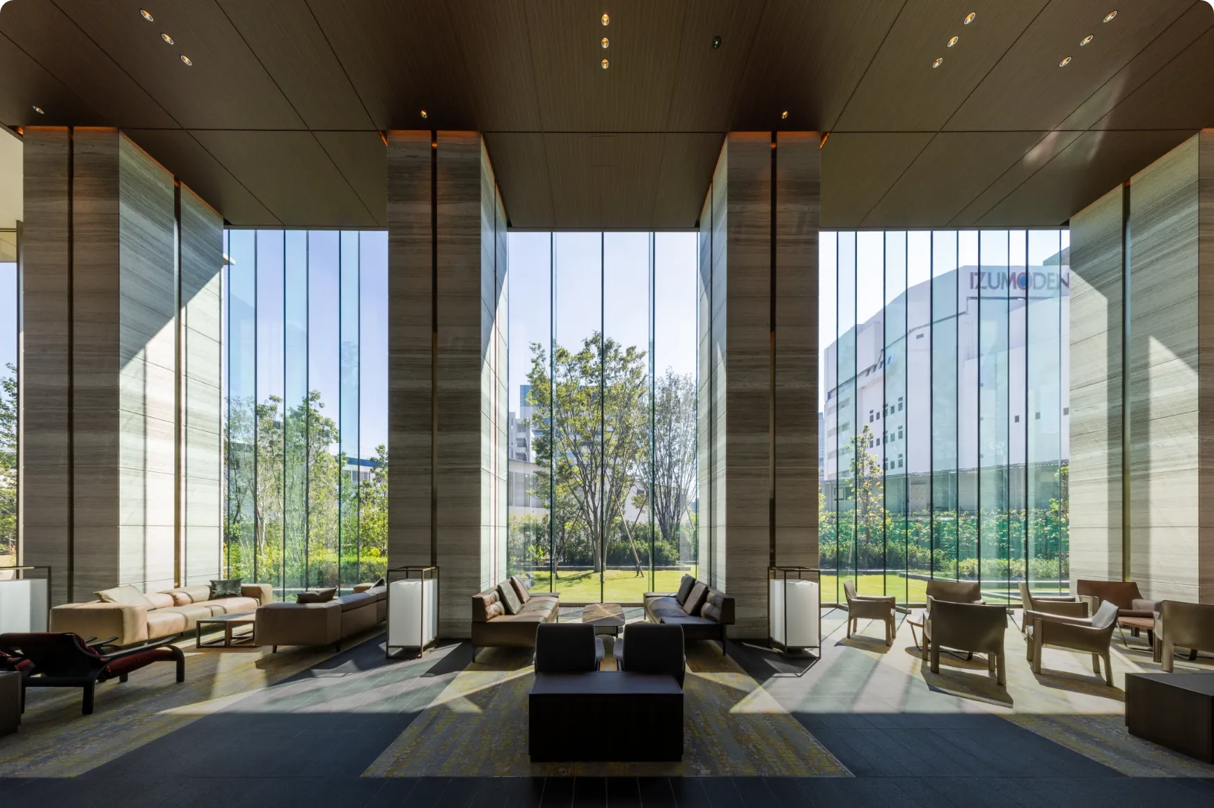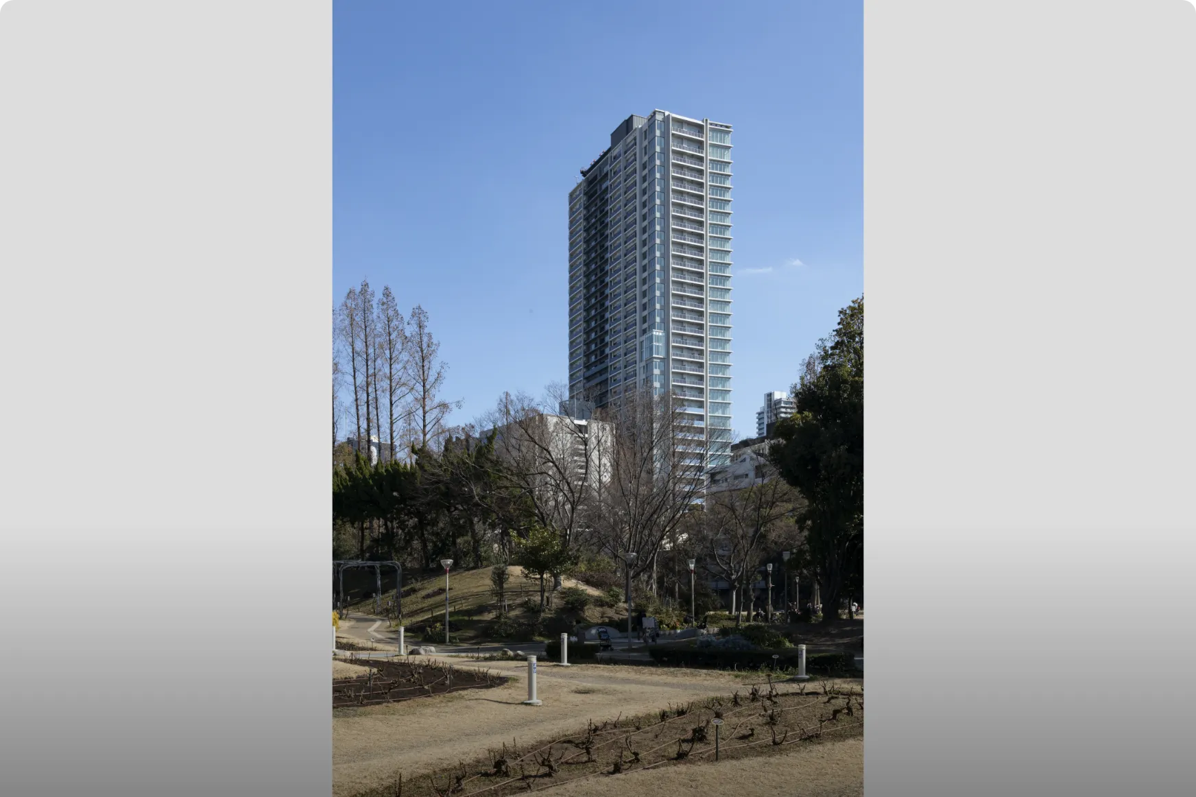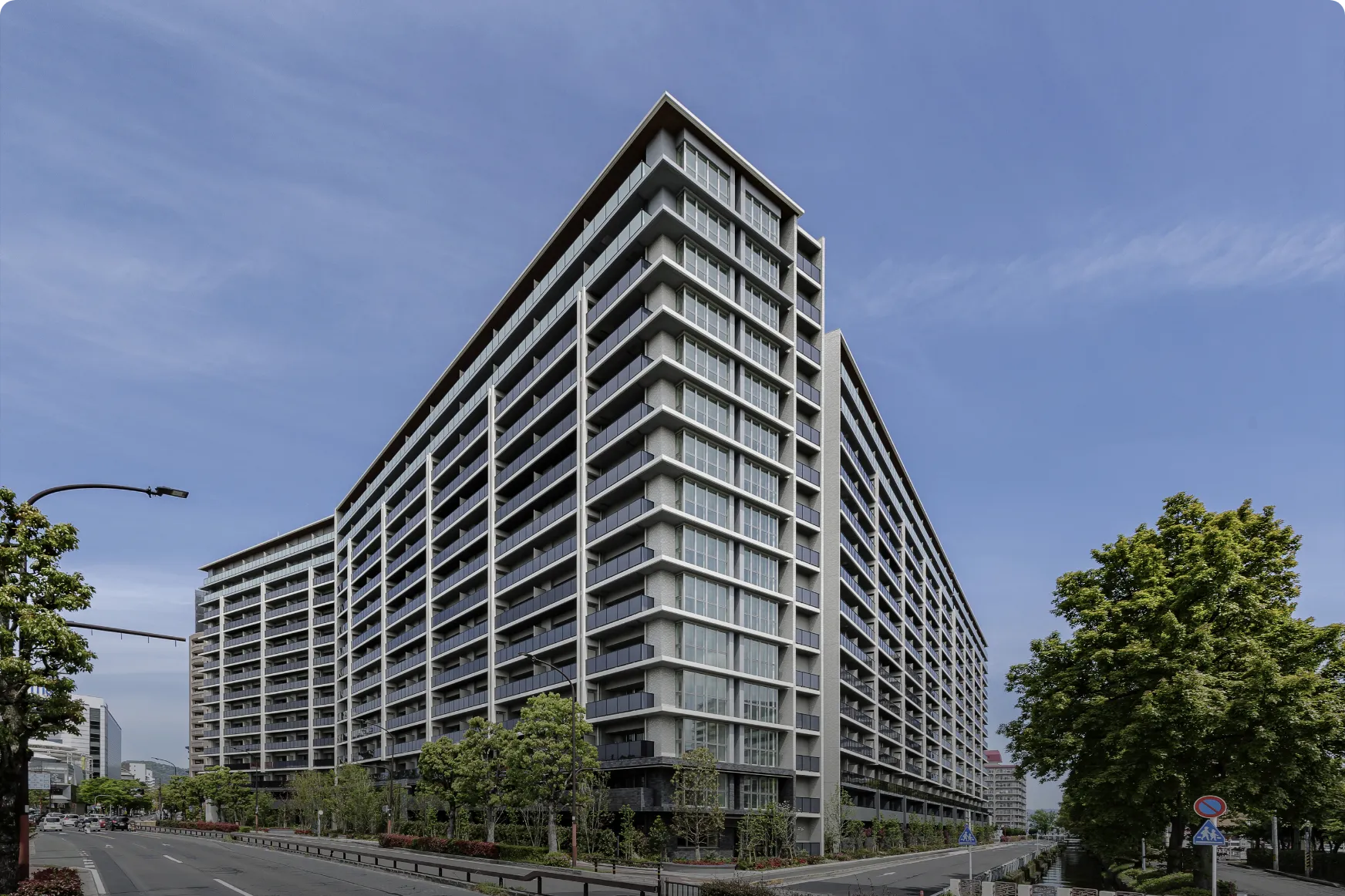 Osaka Metro「堺筋本町」駅徒歩1分の地上44階超高層タワーマンション。大通りに面した3方角地に位置しながら、格調高き塀と門で別世界を演出し、その中に四季折々の植栽が彩るプライベートガーデンを内包する。「おおさか優良緑化賞」奨励賞受賞。
