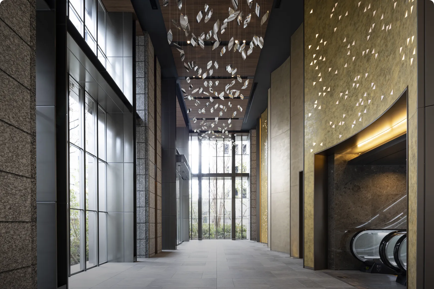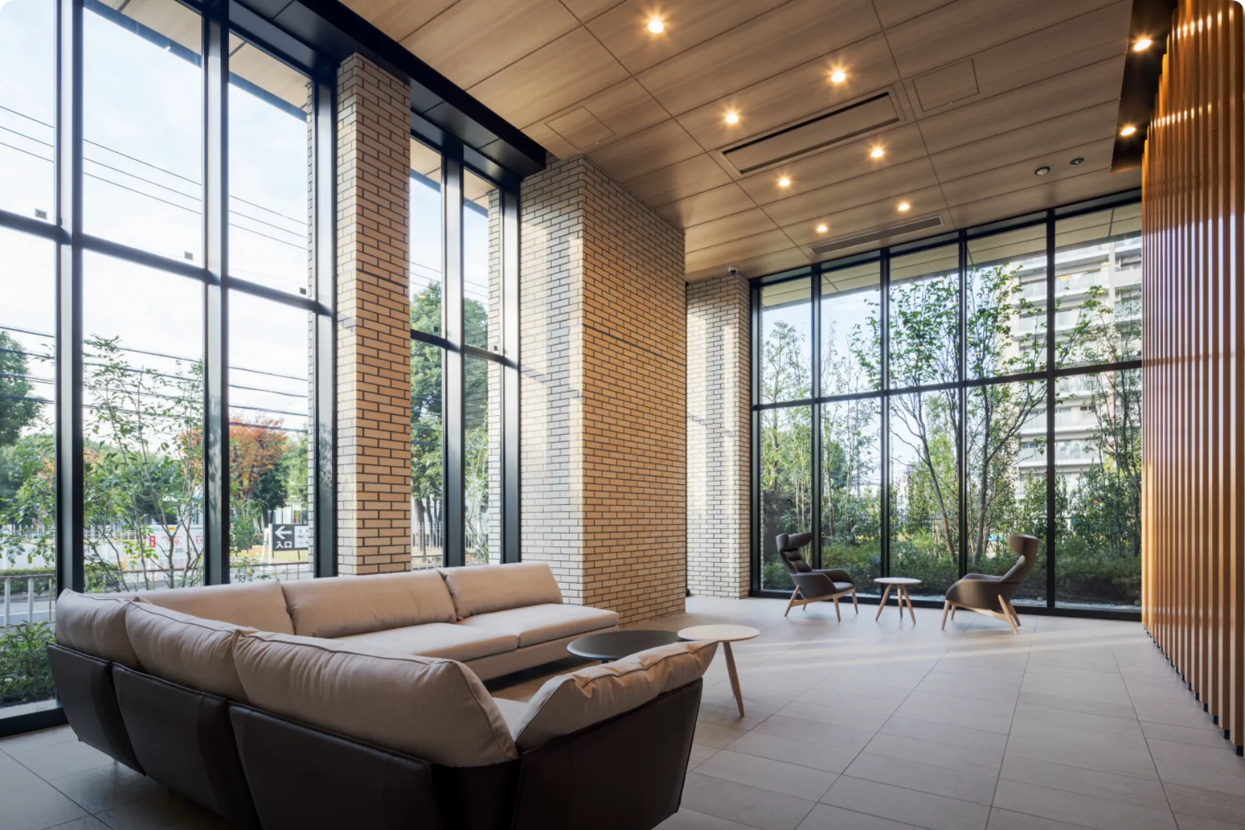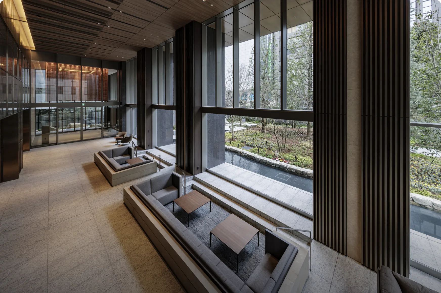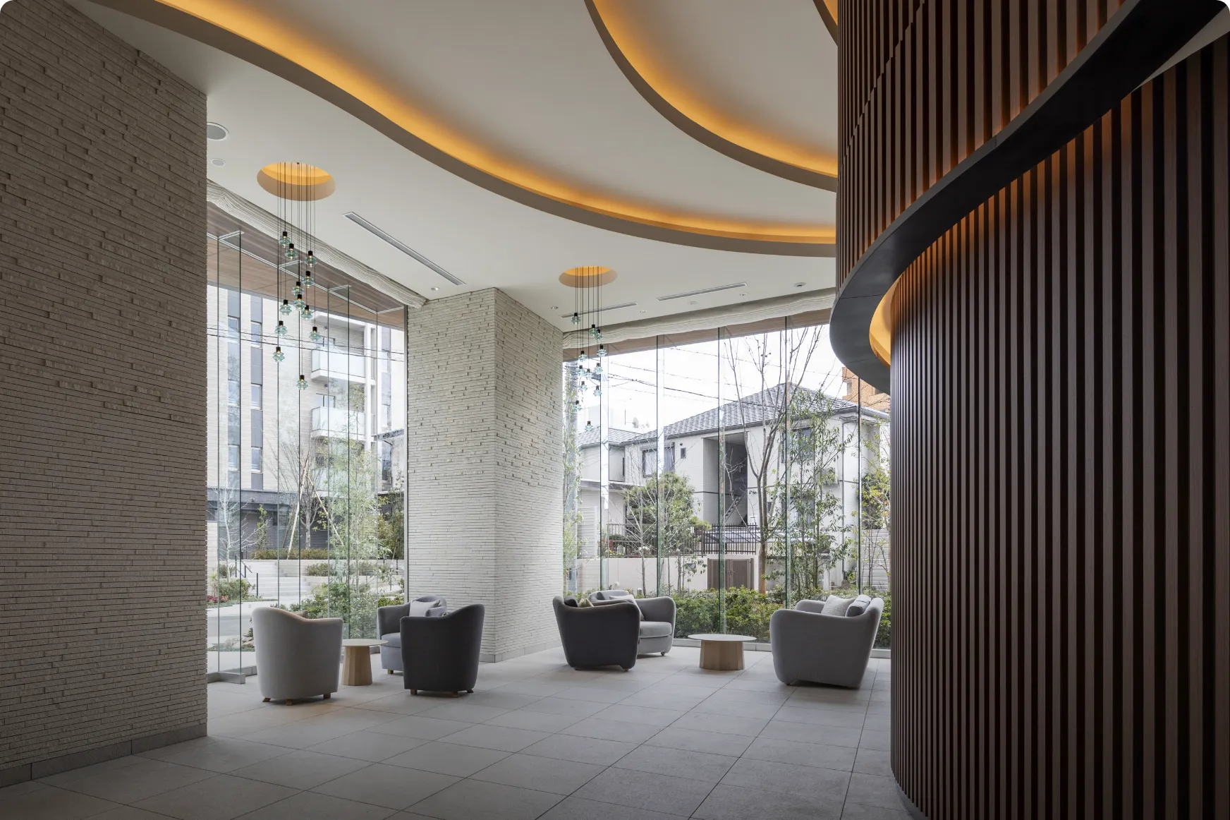 Osaka Metro「堺筋本町」駅徒歩1分の地上44階超高層タワーマンション。大通りに面した3方角地に位置しながら、格調高き塀と門で別世界を演出し、その中に四季折々の植栽が彩るプライベートガーデンを内包する。「おおさか優良緑化賞」奨励賞受賞。