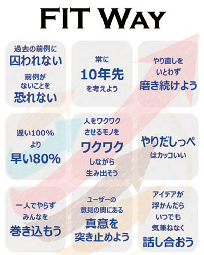 オフィスに掲出している「FIT WAY」の行動スローガンに基づいて、部門の一人ひとりがアグレッシブに、チーム間でもコミュニケーションを図りながら、長谷工の未来を創っていきたいと思っています。