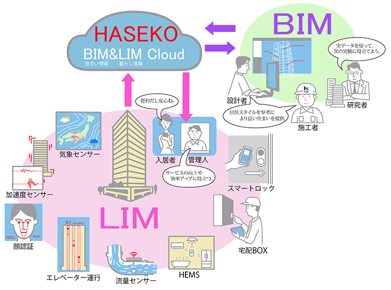 建築物の3次元モデルに各種データを統合し、設計や施工に活用している「BIM(Building Information Modeling)」に加えて、入居者の情報を一元化し、先進機器と組み合わせて付加価値を提供する新しい情報サービスシステム「LIM(Living Information Modeling)」とを統合した「BIM & LIMCloud」が、2020年春から運用が開始されます。 これからのマンションライフ、マンション管理、マンションづくりにもっと役立つ情報を提供したいと、私たちチームが取り組んできた、新しいサービス。 どんな付加価値情報を提供したらいいか、チームのみんなとの雑談、パートナー企業、それに家族との会話が発想や開発のヒントになっています。
