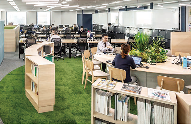 この協働活動をサポートするため、オフィスは常に情報共有でき、コミュニケーションが活性化しやすい環境を整えています。今後も試行と改善を重ね、より良いオフィスへと進化させていきます。