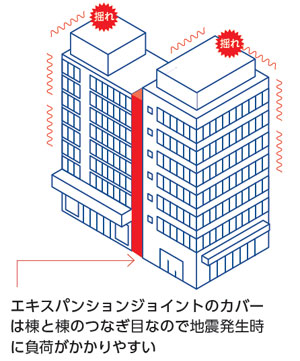 例えば、マンションの棟と棟をつなぐエキスパンションジョイントは、地震の発生に際してそれぞれの建物が別々の揺れ方をするため、従来はカバー部分の金属部材の損傷が不可避でした。しかしWGでは、その可動性を高めつつ、強度を維持することで、地震や大型台風の強風により損傷や脱落が起こり難いカバーを実現しました。これは、設計部門と建設部門、技術推進部門が幾度となく議論を重ね、仕様化に至ったものです。