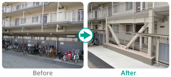耐震化にあたっては、まず耐震診断により新耐震基準の耐震性能を有しているかを診断・解析します。それにより耐震性能が不十分と判断された場合、耐震改修設計を行い、耐震改修工事を実施します。住まいながらの工事となるため、居住者とのコミュニケーションや騒音対策などもかかさずに行っています。これからも安全で安心な暮らしの実現に向けて、耐震化への取り組みを推進していきます。