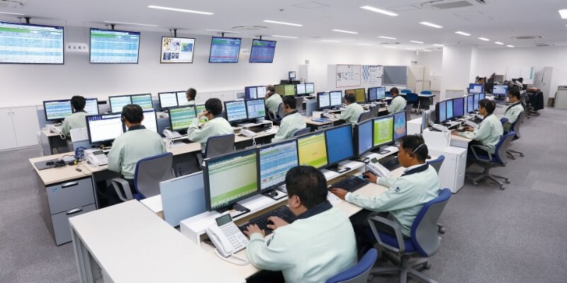 専有部研修ゾーン長谷工コミュニティが自社保有する「長谷工コミュニティアウル24センター」では、24時間365日体制でマンションの警報監視を行っています。異常事態が発生した際は、警報の自動通報もしくは居住者からの電話通報を受け、迅速に状況を把握し、警備員やスタッフが現場に出動します。また、夜間休日のフリーダイヤルによる電話受付窓口としてのコールセンター機能も担っています。