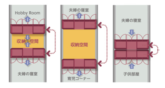 「Large-Storage(ラージストレージ)」 : 居室の使い方に制約を与える小物収納を集約した「大型収納」