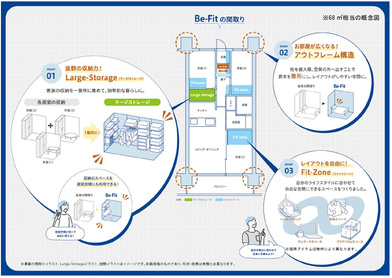 「Fit‐Zone(フィットゾーン)」 : 収納に限定されない自由な使い方が選択可能な「余白空間」