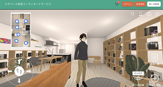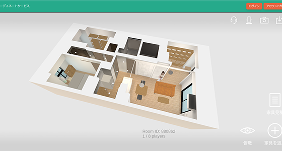 メタバース空間に再現した実際のマンションの間取りで、家具の購入を検討しているマンションのご契約者様が、建物の引渡し前から家具のコーディネートをシミュレーションできるサービス。家具を選ぶ際、再現したお部屋の中でプロのコーディネーターに相談することもできます。