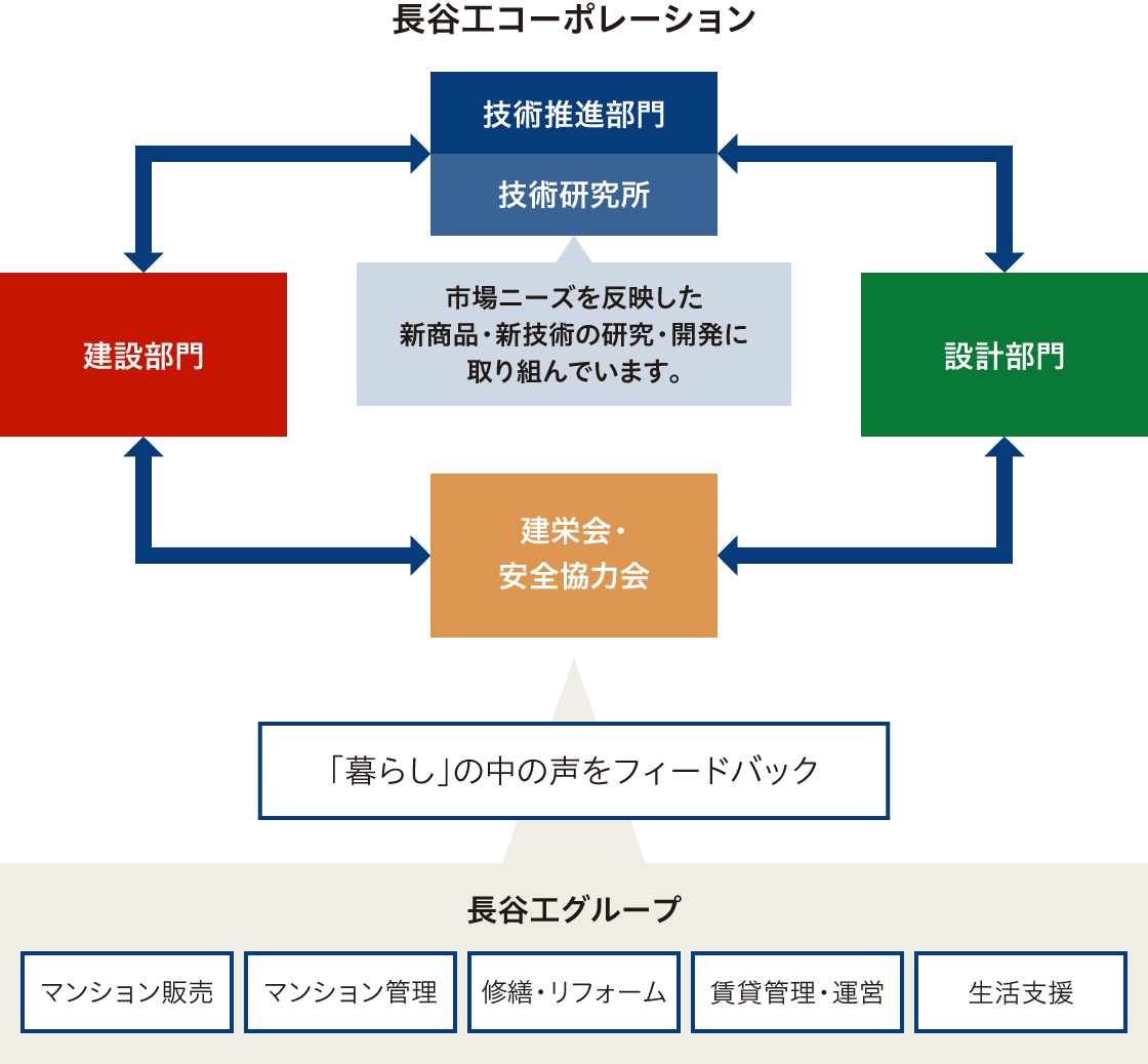 「住む人が、永く安心して快適に暮らせる住まいづくり」を実現するため、長谷工グループ独自の研究開発体制を築き、新たな挑戦を続けています。