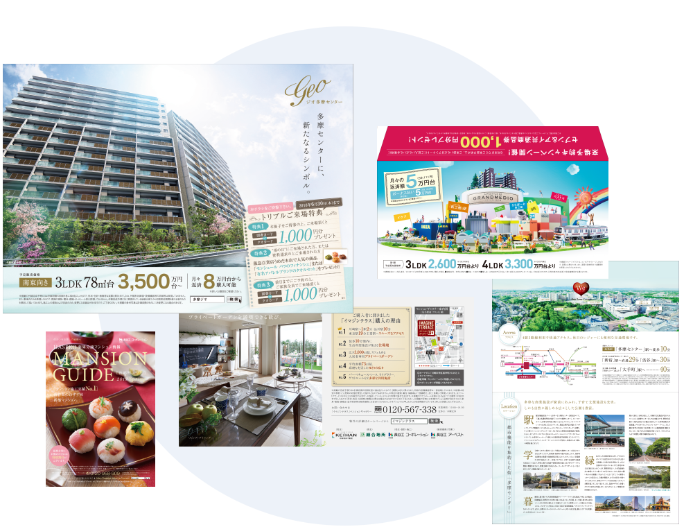いまやマンション販売に欠かせないあらゆるツール制作をお任せいただけます。