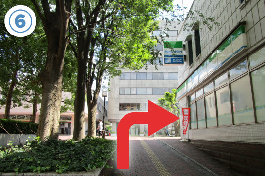 ⑥突き当りのT字路を右に曲がります(右手にはファミリーマートが見えます)。