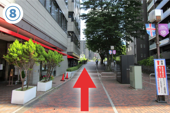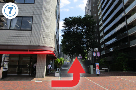 ⑦新都市センタービル横の一つ目の角を右に曲がります。
