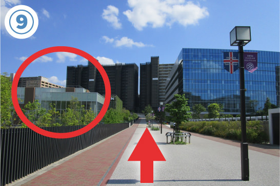 ⑨左手に見える建物が長谷工マンションミュージアムのある施設です。