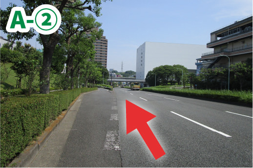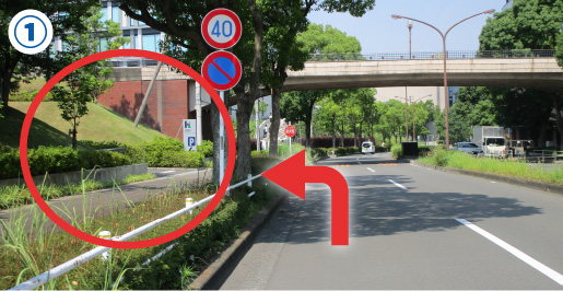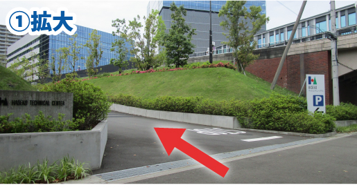 ①多摩中央公園通り沿いに車両入口がございます。