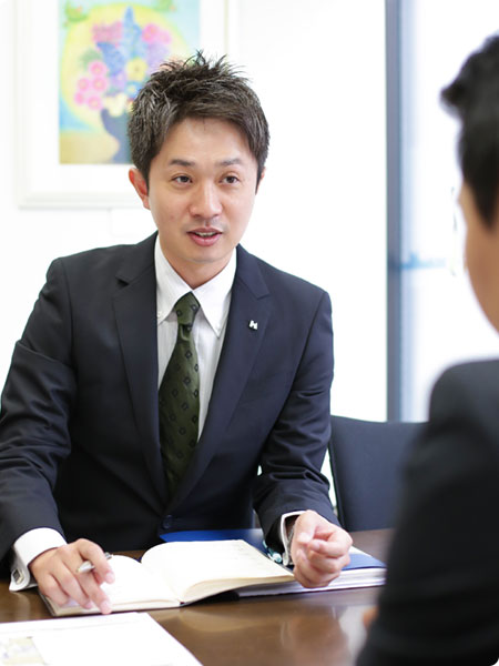 売却のご相談をいただいたお客さまのお宅に訪問し、売却価格の査定や販売プランのご提案をさせていただき、専任媒介契約を締結します。ご契約いただいた物件の販売チラシを作成したり、インターネットの広告を掲載することで販売促進を行い、購入検討者の方にお部屋をご案内して、資金計画や住宅ローンのご相談を行います。不動産に関する専門知識はもちろん、税金や銀行融資の理解が必要となります。ほとんどのお客さまがご年配の方なため、相手を敬い、私自身が常に学ばせていただく姿勢を忘れないことを心がけています。