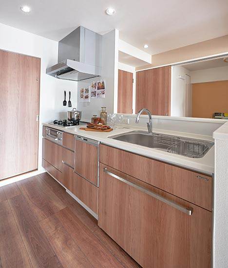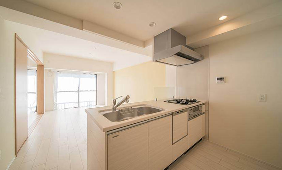 表層リフォームに加え、住設機器を交換します。間取り変更はしませんが、一部間仕切り壁の位置変更にてユニットバスやキッチンのサイズ変更も可能です。(賃貸マンション・分譲マンション向け)