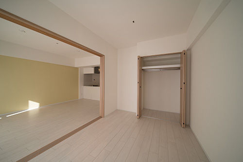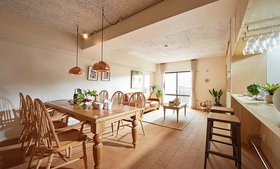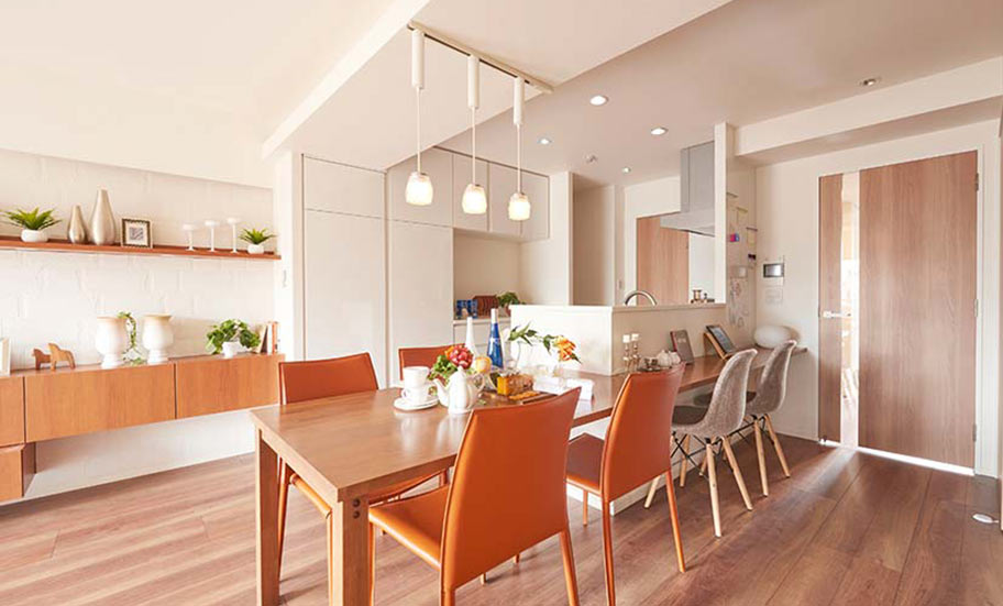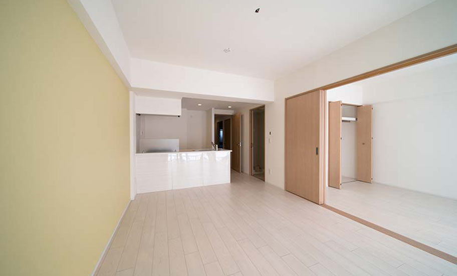 既存の天井、壁、床を全て解体し、電気配線や設備配管も一新します。ライフスタイルに合わせて間取りの変更もできます。分譲の場合、販売促進としてメニュープランやカラーセレクト、オプション工事なども提案可能です。