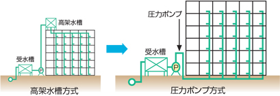 - 高架水槽を撤去し、受水槽から水を直接供給