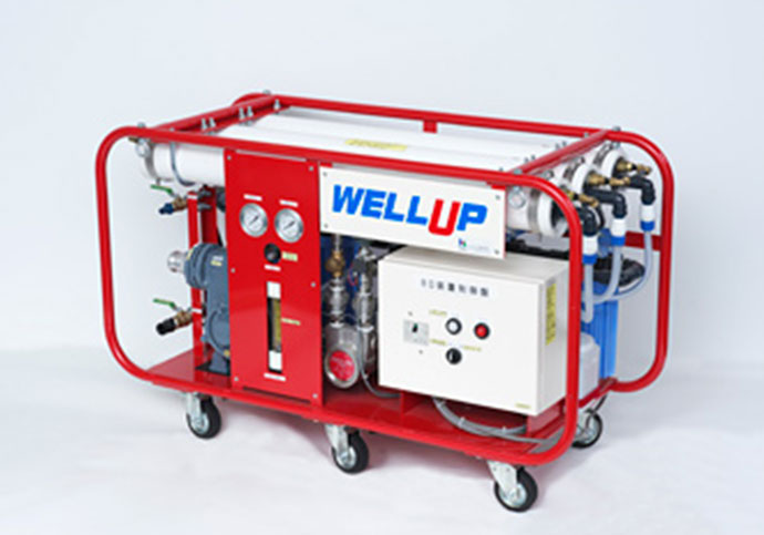 震災などの非常時に井戸・河川・水槽の水から安全な飲料水を生成し供給します。高分子RO膜を採用しており、井戸、河川・水槽の2種類で様々な原水に対応いたします。
