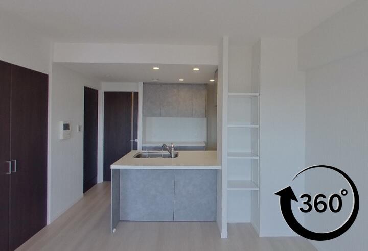 (図面の●もしくは写真の<をクリックすると移動します。写真上をクリックしながら動かすとお部屋の中を360°ご覧いただけます。)