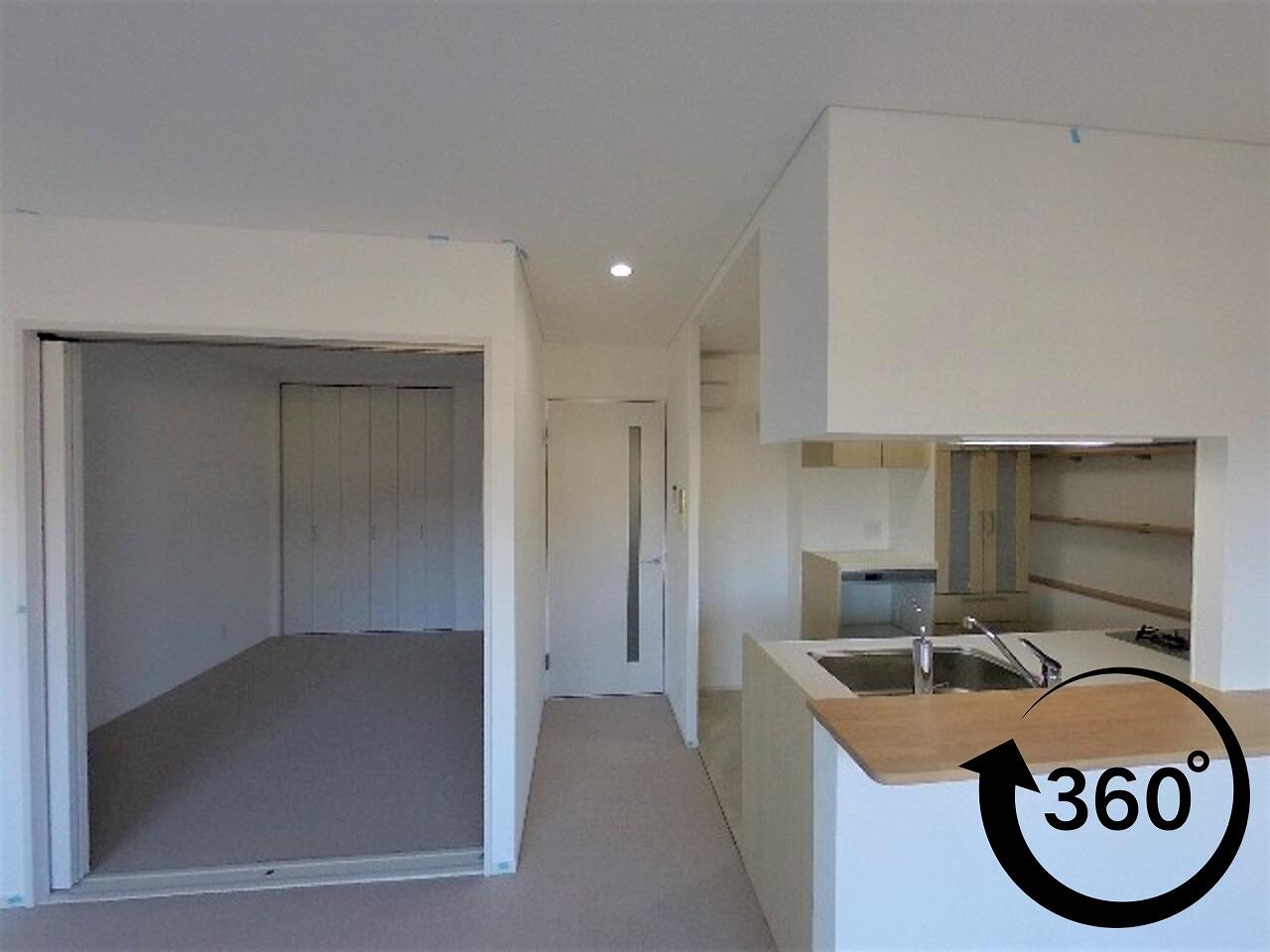 (図面の●もしくは写真の<をクリックすると移動します。写真上をクリックしながら動かすとお部屋の中を360°ご覧いただけます)