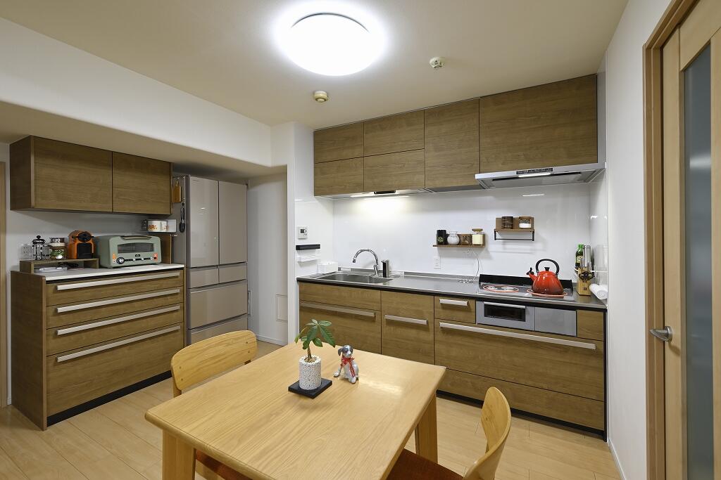 以前に部分リフォームで当社に依頼されたことがあるMさま。今回は奥様とワンちゃんのためにリフォームを決められました。より使いやすいようにまずはキッチンを一新。妥協することなく、奥様が一番と思うものに変更したいとうお考えで、ご夫妻で何度もショールームを見学して納得のいくものを選ばれました。収納力のある吊戸棚は電動式にし、デザインも使い勝手もアップ。カップボードの配置も熟考を重ねてより快適に使えるキッチンへと生まれ変わっています。日頃の感謝を込めたご主人から奥様への大きなプレゼントとなりました。