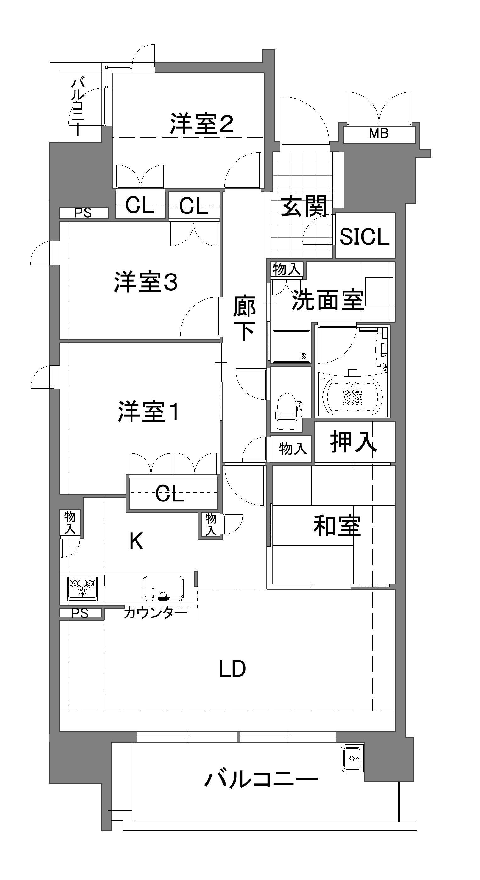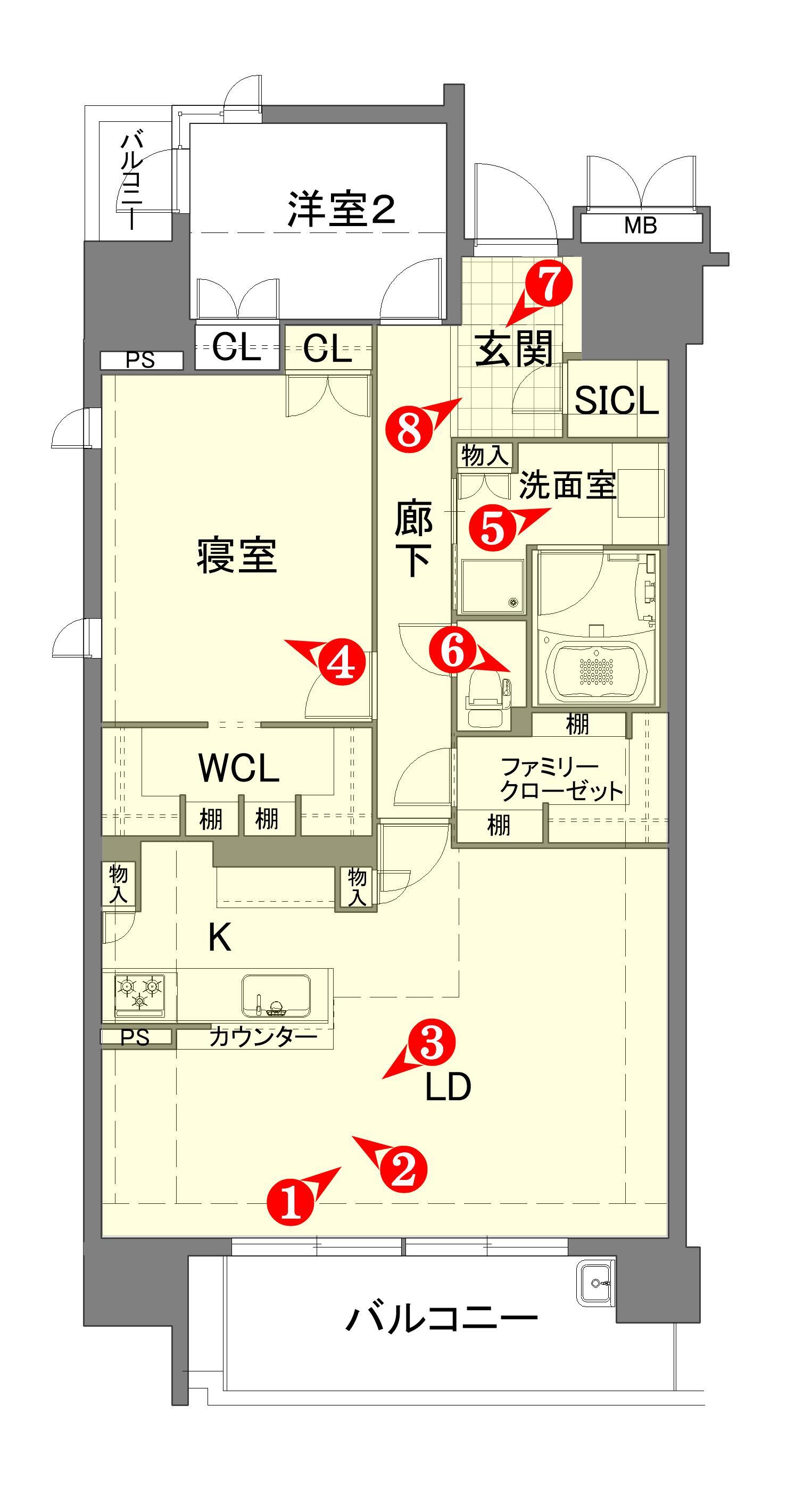 - リビングダイニング、キッチン、洗面/浴室/トイレ、収納、玄関/廊下、寝室