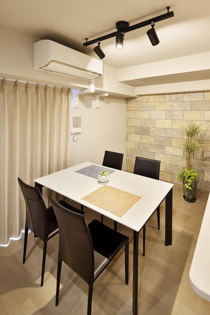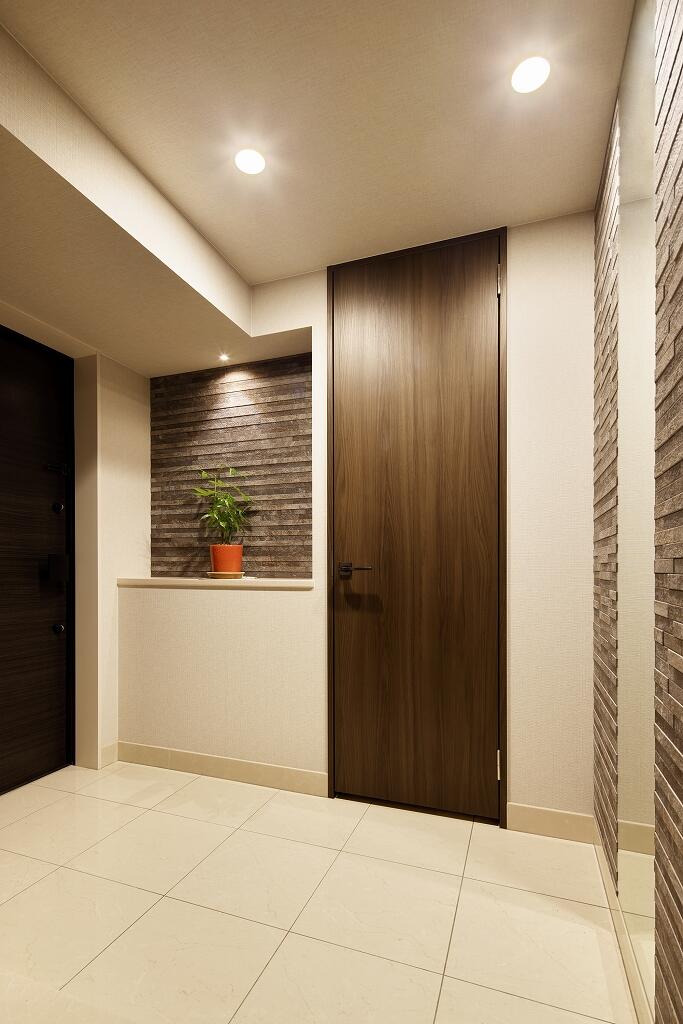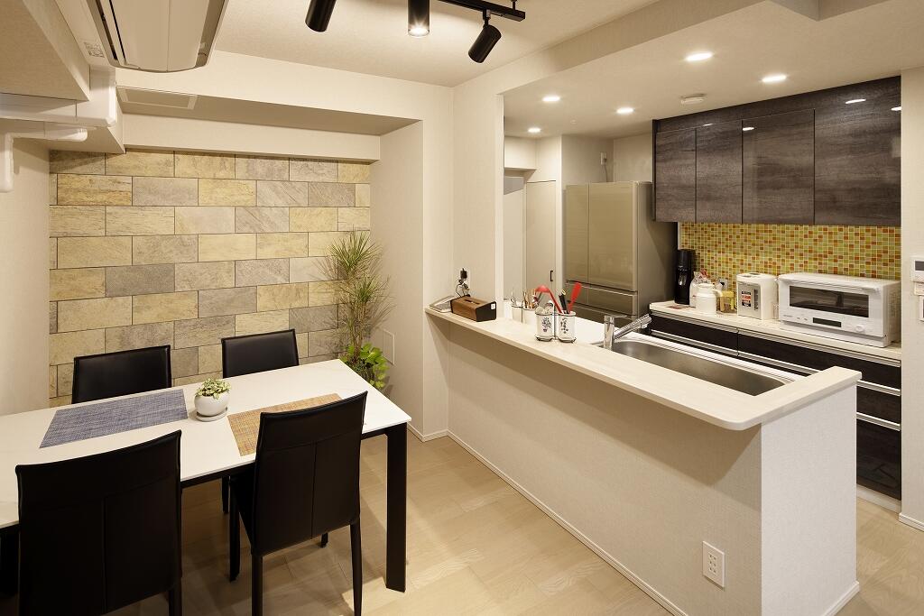 また、フォーカルポイントを意識したタイルや木製パネルを随所に取り入れながら照明の種類や配置も見直され、それぞれ素材が引き立つ素敵なインテリアに仕上がっています。