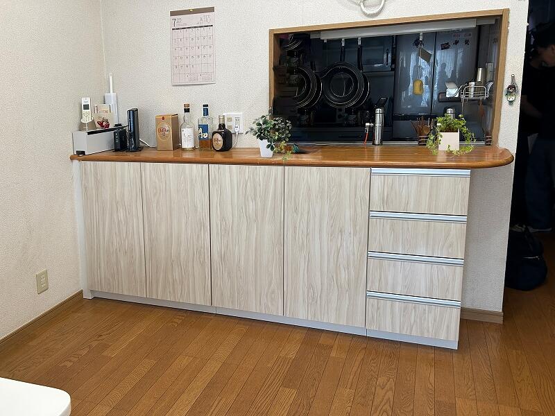 ⑩【カウンター下収納:約 5.6万円(税込)(取付設置費 別途)】ダイニングスペースを圧迫しない範囲で、収納したいもの、量に合わせてオーダーしました。