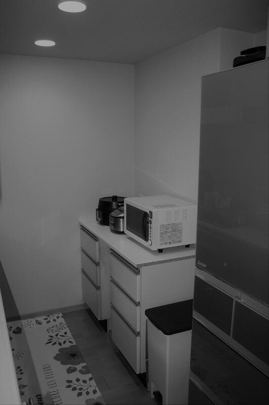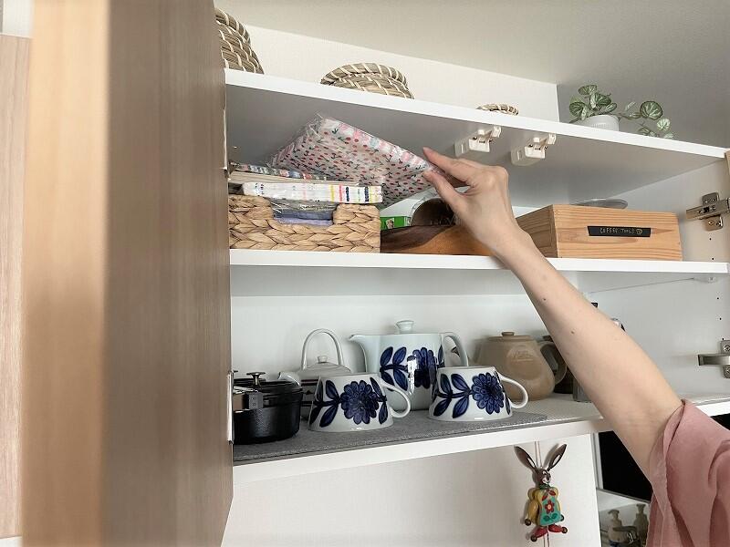 ⑧【オープン棚】元々あった収納棚と同じデザイン、サイズで一新。主張しない『ホワイトマット』が空間に馴染んでいます。