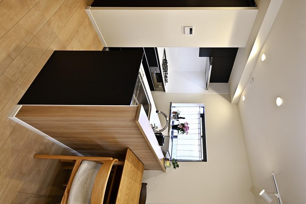 無駄の多かったキッチンを改善しようとリフォームを決められたA様。相談された当社の女性スタッフが話しやすかったことから、検討していた相見積もりをすることなく、ご依頼頂きました。お悩みに対してご提案したのは、キッチンに隣接していた和室と廊下をなくしてリビングに取り込んだ、LDKでのびのびとくつろげるプラン。キッチンはショールームで見て気に入られた黒のキッチンを採用し、対面式に配置しました。明るい色合いの床材とクロスを合わせることで、和モダンの空間に生まれ変わりました。不安だった収納は、パントリーの提案で解決し、手持ちのモノをスッキリと片付けられる空間となっています。また、洗面室やトイレも室内と統一感を持たせて洗練された空間に様変わりさせたほか、玄関もポーチまで続くタイルにこだわって、重厚感のある佇まいとなりました。「廊下をなくすという、自分では思いつかない驚きのプランを提案して下さいました。気に入っていた和室をなくすか迷いましたが、広く快適に生活できるようになり、とても満足しています」とA様。季節の飾り物や植物を置いて丁寧な暮らしを送られています。