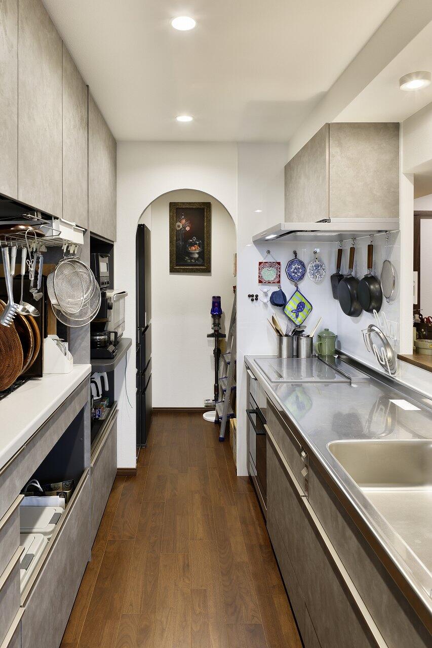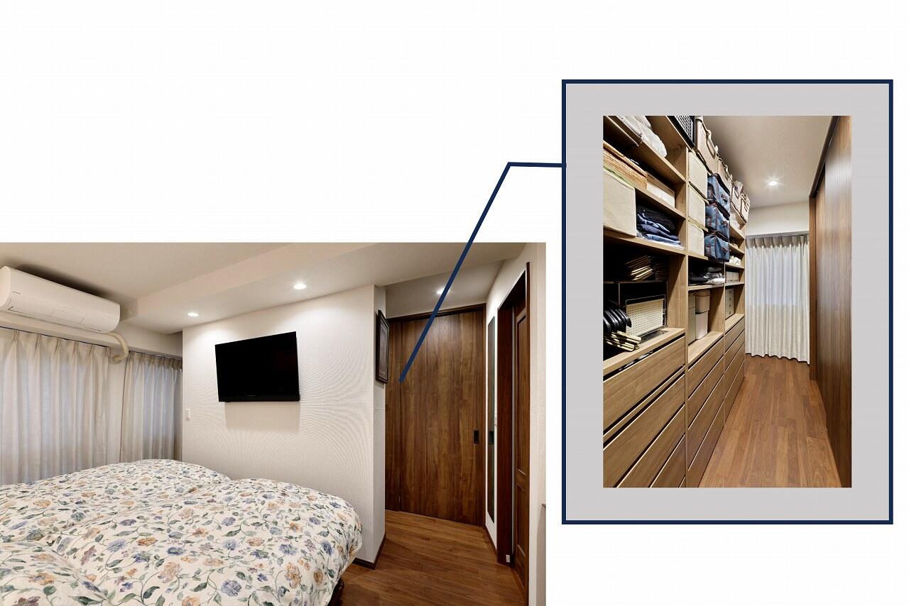 キッチン用品はキッチン横のパントリーへ、衣類や身の回りのものは寝室のウォークインクローゼットへ。