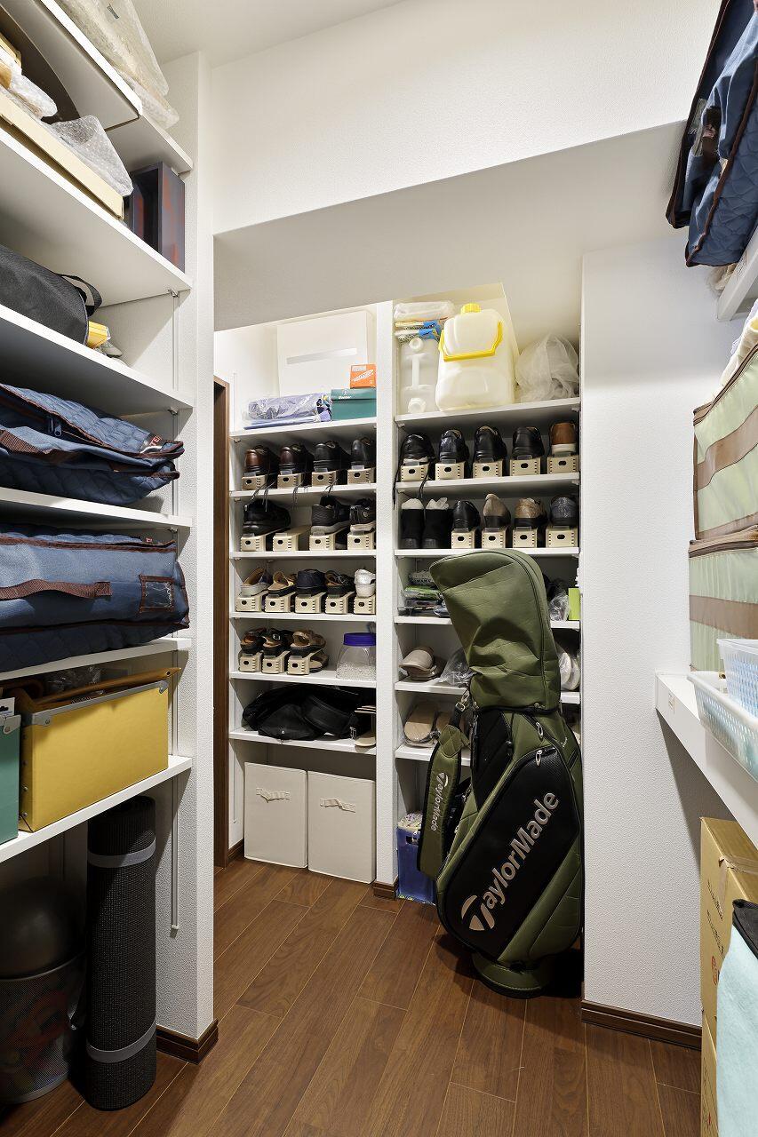 さらに、リビング収納など ほかの収納スペースも用途に合わせて配置 し、必要なものが自然と“使う場所のそば”に収まるよう見直しています。