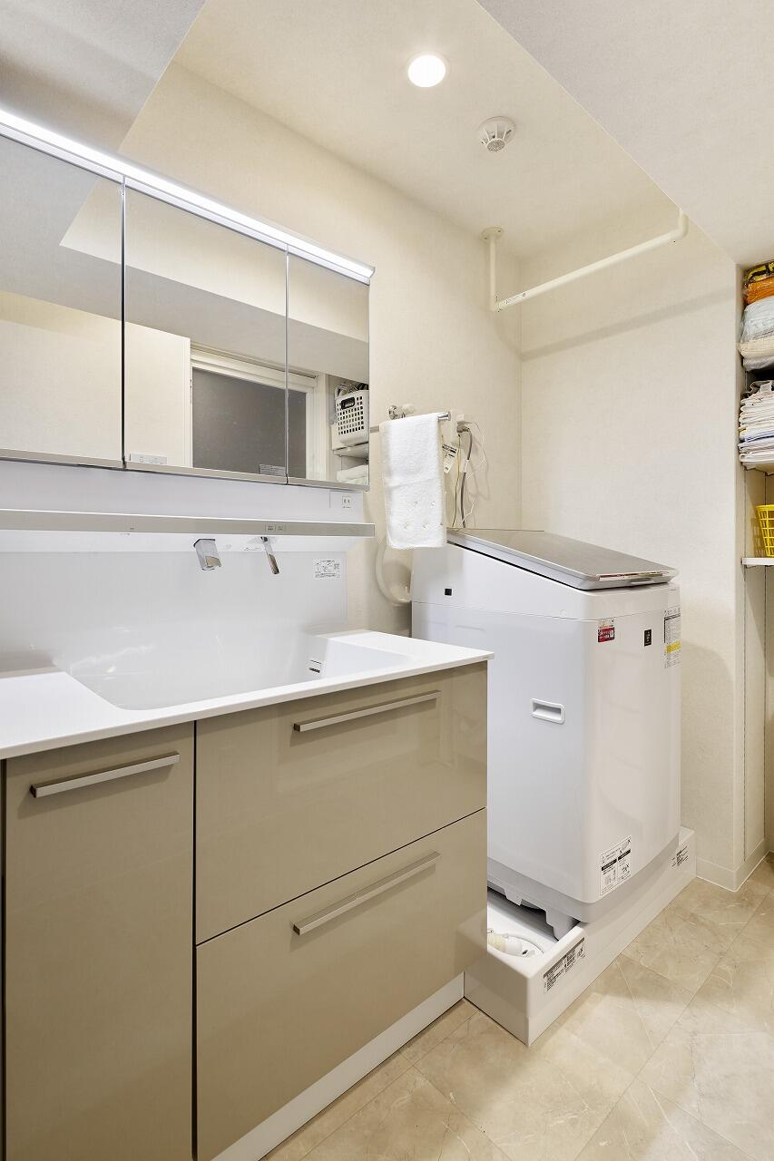 ストックを一か所にまとめるのではなく、使う場所ごとに収納を分ける ことで、家事や身支度の動線が大きく改善。