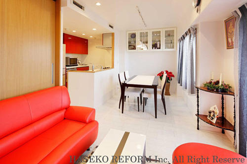 F様邸は、増えてきた衣類を十分に収納できる効率的なクローゼットの必要性を感じられたことが、リフォームのきっかけとなりました。ここから、ご夫婦でリフォームのイメージをあたためられ、「赤と白」のコントラストを効かした空間をテーマに、家づくりがスタートしました。