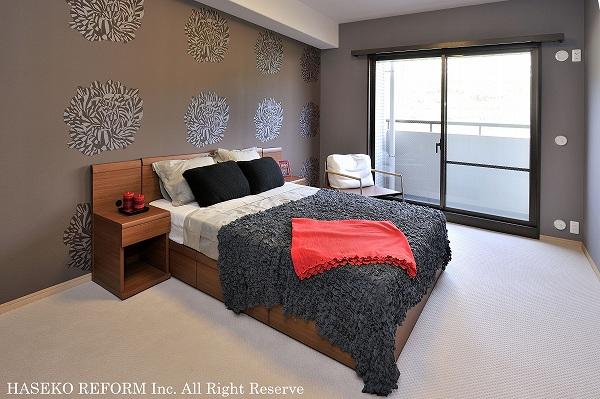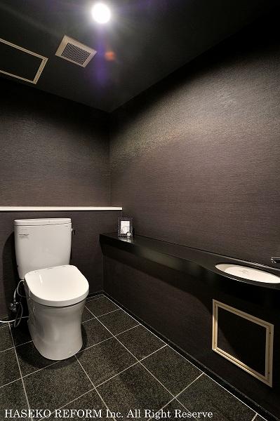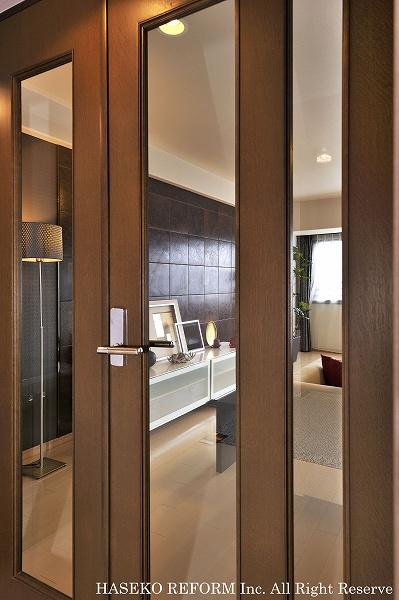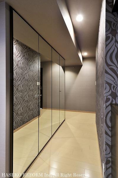 また、このマンションは一室あたりが比較的広い部屋で構成されているため、メリハリが効いた空間になるように工夫しました。玄関や廊下、洋室には随所にアクセントとなる壁クロスを取り入れ、トイレは沈み込むような空間になるようにモノトーンでまとめました。特にリビングはテレビの背面になると思われる壁面に、シックで表情のあるタイルを貼り込み、大型のテレビが主張しすぎないようにしました。アクセントをふんだんに取り入れましたが、不思議と落ち着いた心地よい空間となっています。